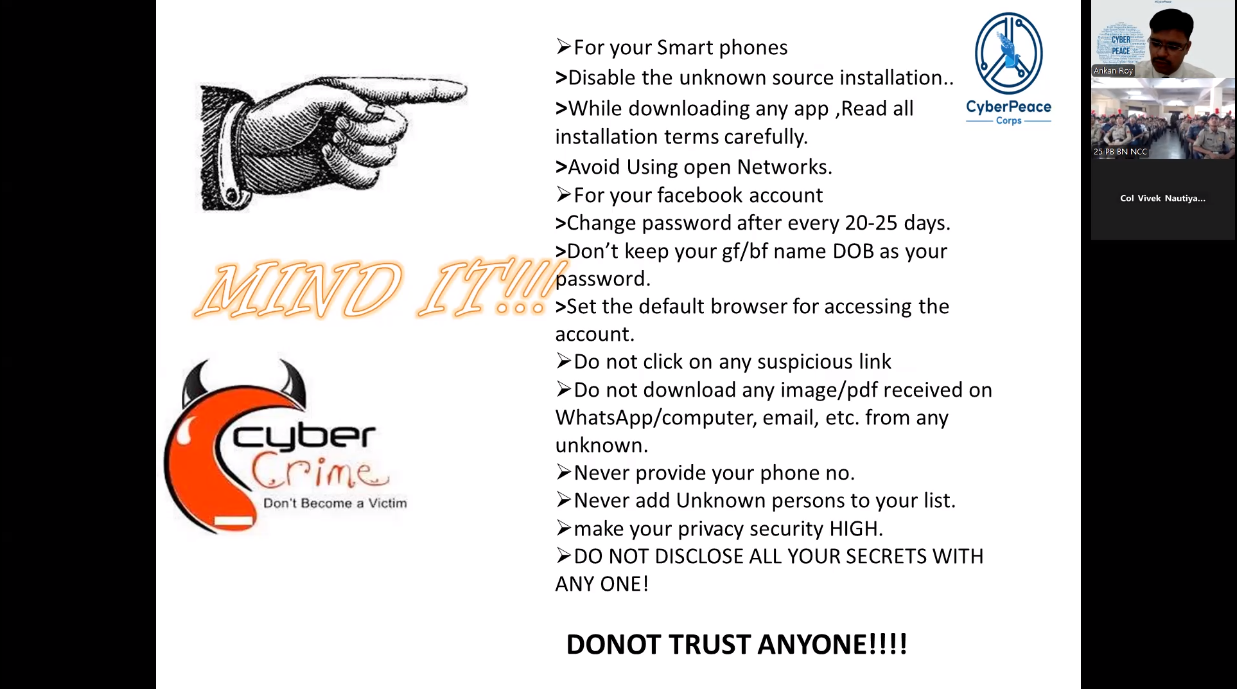 Through comprehensive discussions on topics ranging from phishing attacks to digital identity protection, the program empowered the NCC cadets with the foundational knowledge and skills required to navigate the digital space safely and responsibly.
