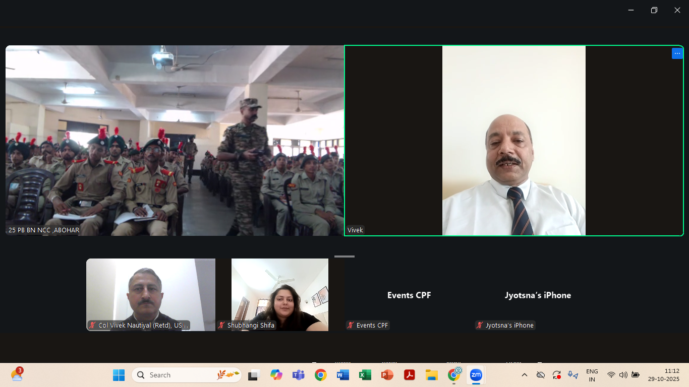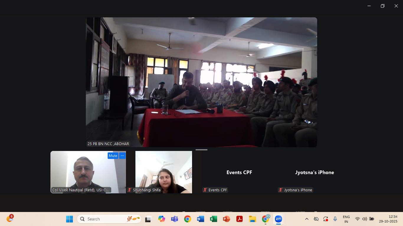 USI of India extends its sincere gratitude to Col Rajeev Sirohi, Commanding Officer, 25 Pb Bn NCC Abohar and his team for their outstanding support in hosting the event. A special commendation is due to all NCC cadets for their active engagement and enthusiastic participation throughout the session.