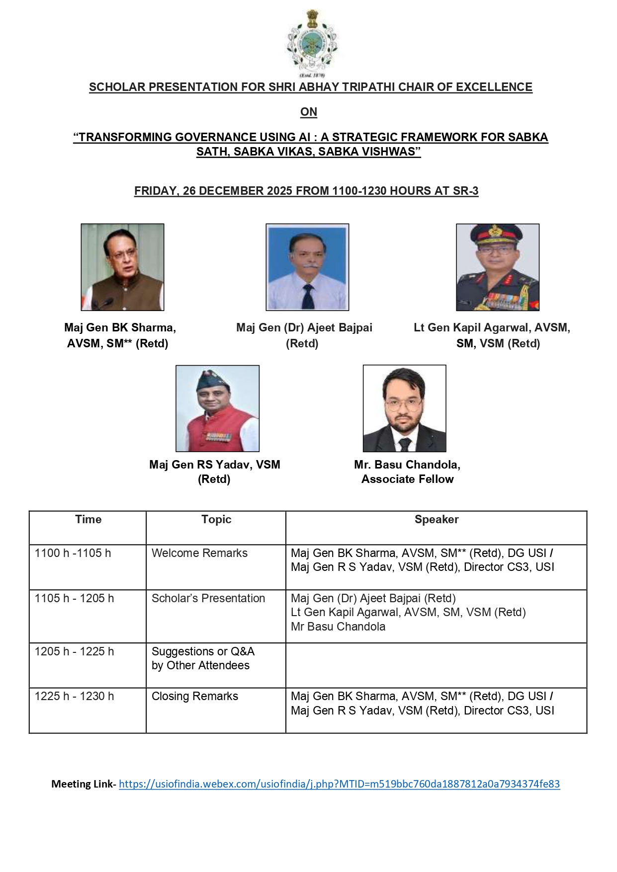 Military Heritage || Geopolitics || Comprehensive National Security || Military Affairs || Niche and Disruptive Technologies || UN Peace Keeping || Professional Military Education || Net Assessment || Scenario Games || Red Teaming