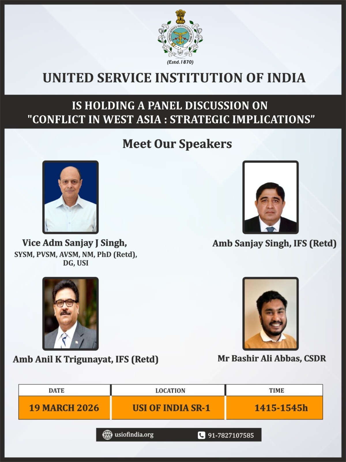 The United Service Institution of India was founded in 1870 by a soldier scholar, Colonel (later Major General) Sir Charles MacGregor. The story of its growth is the story of the growth of the Indian Armed Forces. It was founded for ‘furtherance of interest and knowledge in the art, science and literature of the Defence Services.’