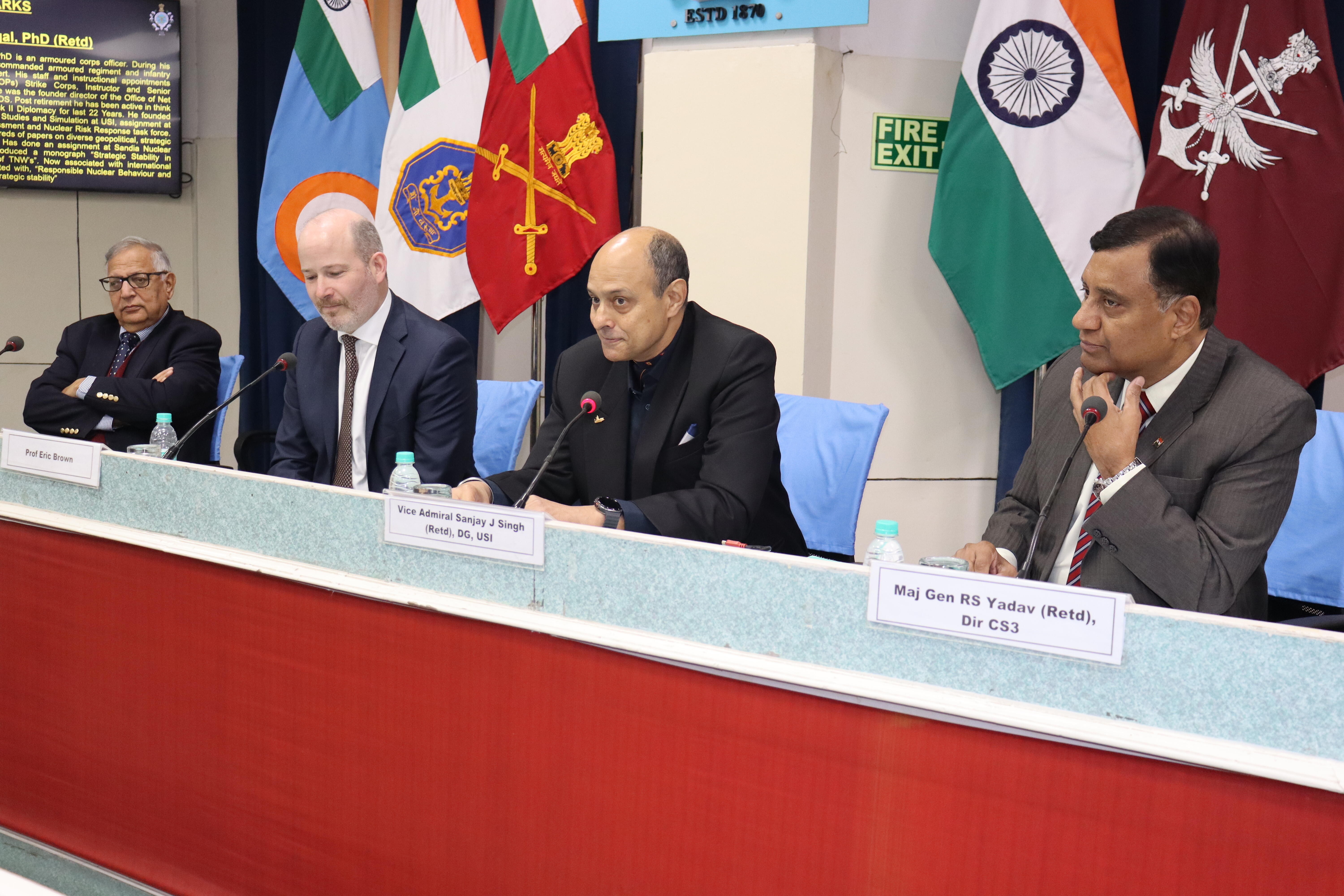 The United Service Institution of India (USI) hosted a delegation of 20 students from the College of William & Mary, USA, under the mentorship of Professor Eric Brown, on 09 January 2026 for an academic interaction on the theme “American and Indian Statecraft in a Changing Global Order.” The session featured perspectives from both the United States and India, with Professor Eric Brown presenting the American viewpoint and outlining the evolution of U.S. statecraft amid great power competition, alliance-based strategies, and growing challenges to the existing international order, particularly in the Indo-Pacific. Presenting the Indian perspective, Maj Gen R S Yadav, VSM (Retd), Director CS3, USI, emphasized India’s approach to statecraft rooted in strategic autonomy, issue-based partnerships, and pragmatic engagement with major powers, shaped by historical experience, regional security concerns, and global aspirations. Brig Arun Sahgal (Retd) highlighted areas of convergence and divergence between Indian and American strategic thinking, underscoring the importance of realism and adaptability in a complex global environment; this was followed by an interactive question-and-answer session. Vice Admiral Sanjay J Singh, UYSM, PVSM, AVSM, NM, PhD, IN (Retd), Director General, USI, shared his expert views, stressing the value of sustained academic exchanges in strengthening mutual understanding and strategic cooperation.